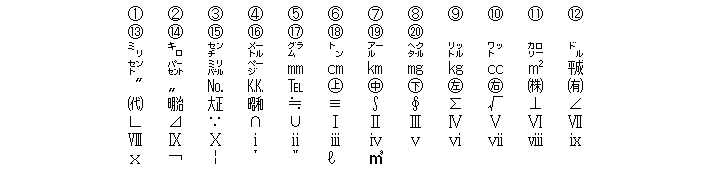 正しく表示されない機種依存文字(環境依存文字)の例は次のとおりです。